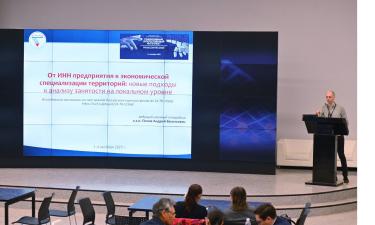 Ведущий научный сотрудник Центра социально-демографических исследований ВолНЦ РАН, кандидат экономических наук Попов Андрей Васильевич представил доклад на тему «От ИНН предприятия к экономической специализации территорий: новые подходы к анализу занятости на локальном уровне» и предложил методический подход к исследованию занятости населения на локальном уровне с использованием инструментов автоматизированного получения данных (web-scraping and API). Сбор информации осуществлялся в 2025 г. на территории Вологодской области в несколько этапов, анализ которых позволил выявить экономическую специализацию населенных пунктов и очертить ключевые векторы занятости населения.