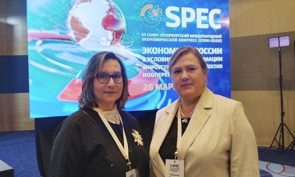 Делегация ВолНЦ РАН под руководством директора д.э.н. А.А. Шабуновой приняла участие в XI Санкт-Петербургском международном экономическом конгрессе (СПЭК-2026) на тему «Экономика России в условиях трансформации мироустройства и перспектив нооперехода», который состоялся 26 марта 2026 года в Санкт-Петербурге. Организатором выступил Институт нового индустриального развития имени С.Ю. Витте совместно с Вольным экономическим обществом России при участии Секции экономики Отделения общественных наук РАН. В состав Организационного комитета конгресса вошел научный руководитель ВолНЦ РАН, член-корреспондент РАН, заслуженный деятель науки РФ д.э.н., профессор В.А. Ильин. В рамках конгресса ВолНЦ РАН организовал заседания двух семинаров: «Новые и старые вызовы российского рынка труда: конкуренция за знания», «Структурная трансформация российской экономики: цифровизация, интеллектуализация, когнитивизация». Их модераторами выступили директор ВолНЦ РАН, заслуженный деятель науки РФ д.э.н. А.А. Шабунова и заместитель директора к.э.н. Е.А. Мазилов. На секционных заседаниях Центр представили первый заместитель директора к.э.н. Л.В. Бабич, заместитель директора к.э.н. О.Н. Калачикова, заместитель директора СЗНИИМЛПХ – обособленного подразделения ВолНЦ РАН С.А. Башмакова, заведующий Центром структурных исследований и прогнозирования территориального развития к.э.н. Е.В. Лукин, ведущий научный сотрудник, зам. зав. Центром социально-демографических исследований к.э.н. Г.В. Леонидова, ведущий научный сотрудник к.э.н. А.В. Попов.